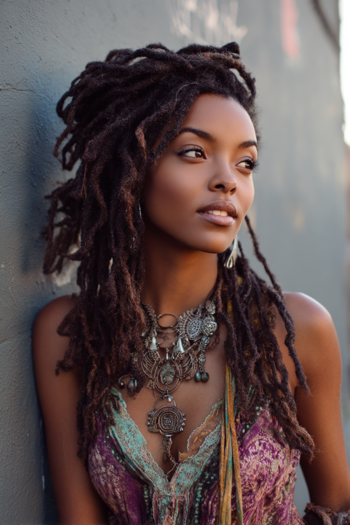 Extensions are wrapped around your natural hair to create the appearance of locs. They look even better as they age and get a little frizzy, giving you a bohemian, earthy vibe.