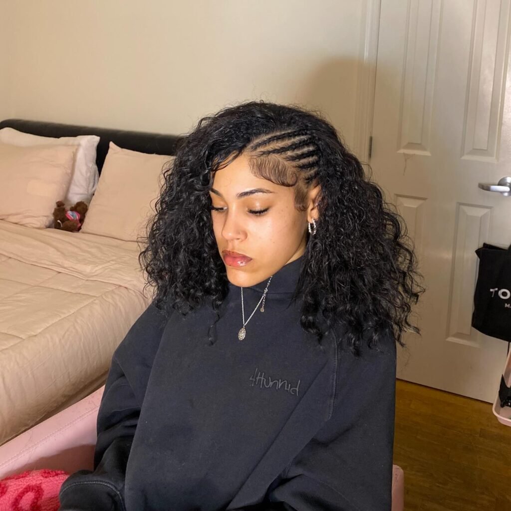 2. Side Cornrows with Voluminous Curly Leave-Out