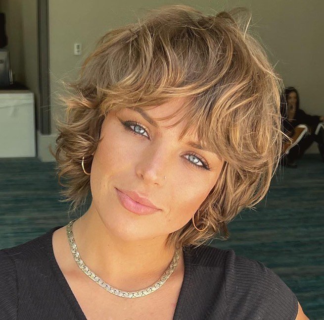 5. Tousled Wavy Bixie with Curtain Fringe