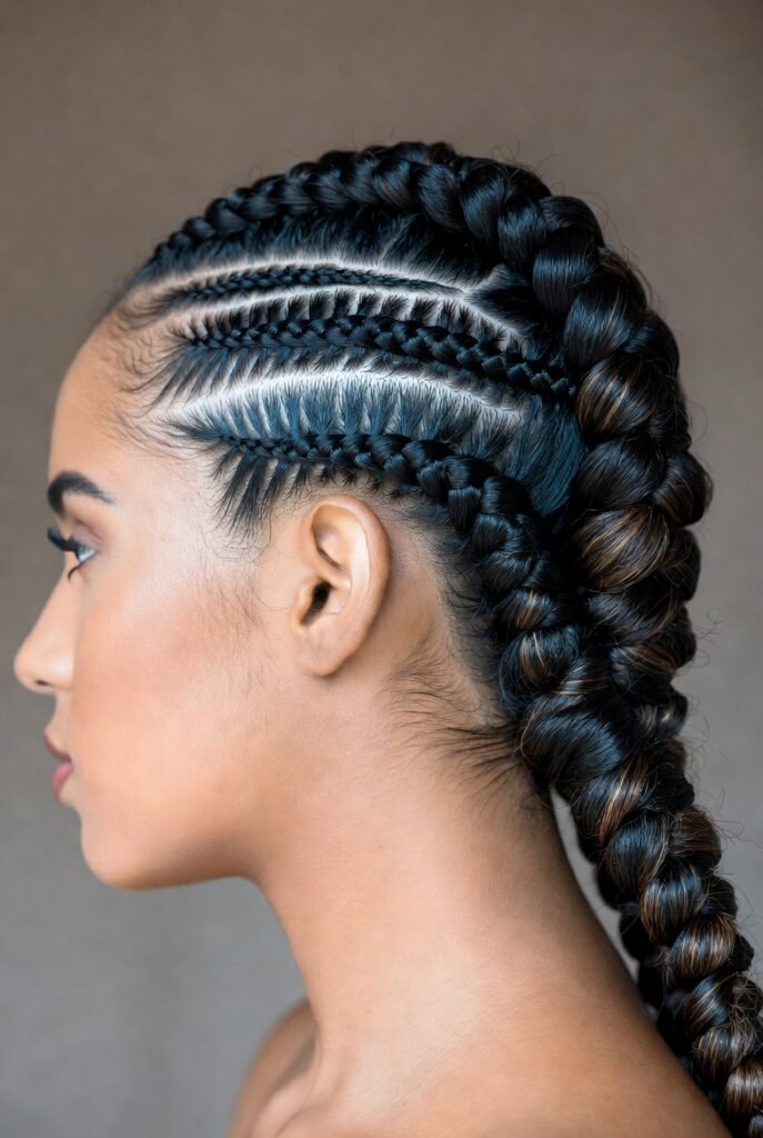 I’ve seen stunning versions where one side has thin cornrows while the other features a single jumbo braid. The imbalance creates visual drama that’s hard to ignore.