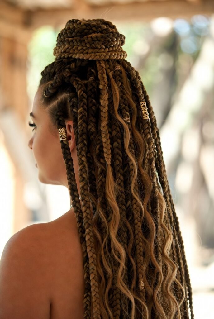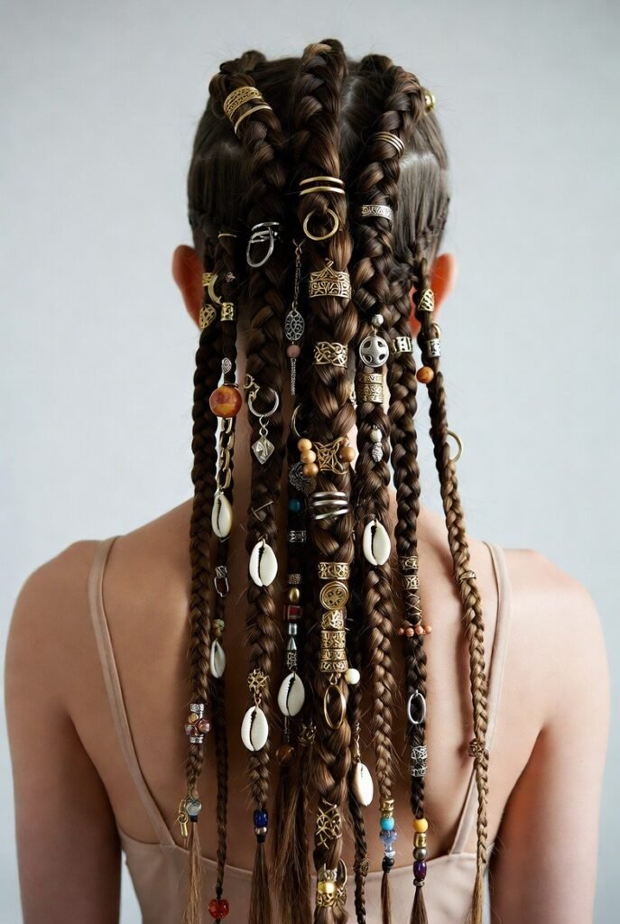This is where you can really let your creativity shine. I’m talking hair cuffs, rings, beads, cowrie shells, and even small charms woven throughout your braids.