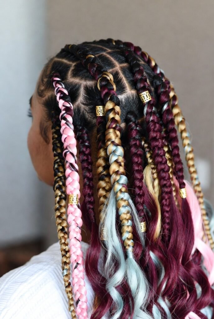 5. Fulani Braids with Colorful Extensions