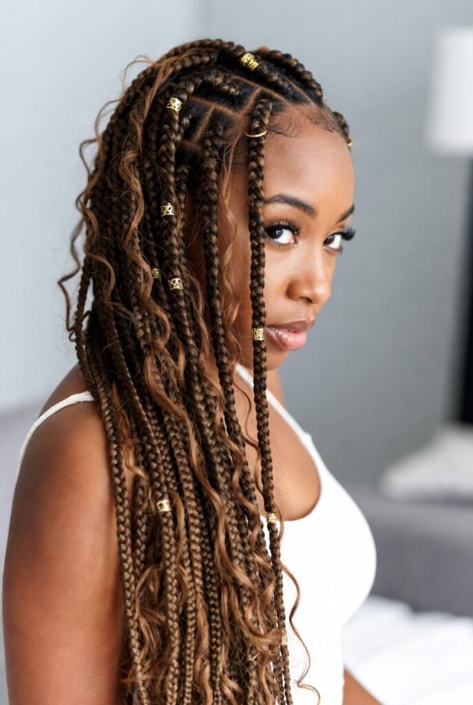 When I want maximum length and drama, I go for long Fulani boho braids that reach my waist or beyond. There’s something powerful about hair that moves with you.
