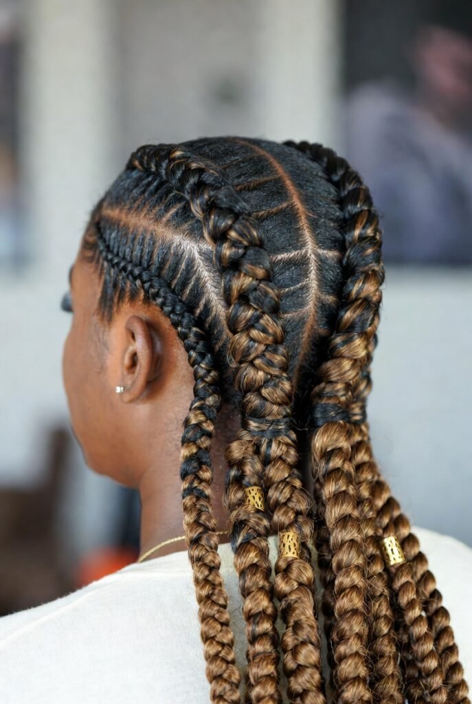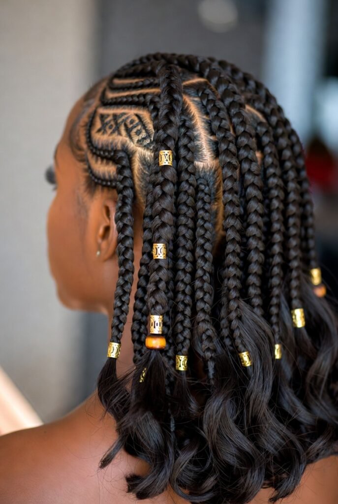 When I’m short on time but still want impact, jumbo Fulani braids are my go-to. These thicker braids mean fewer rows, which translates to less time in the styling chair.