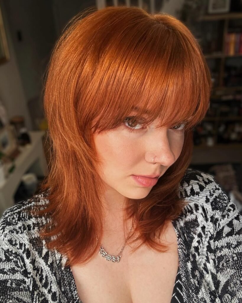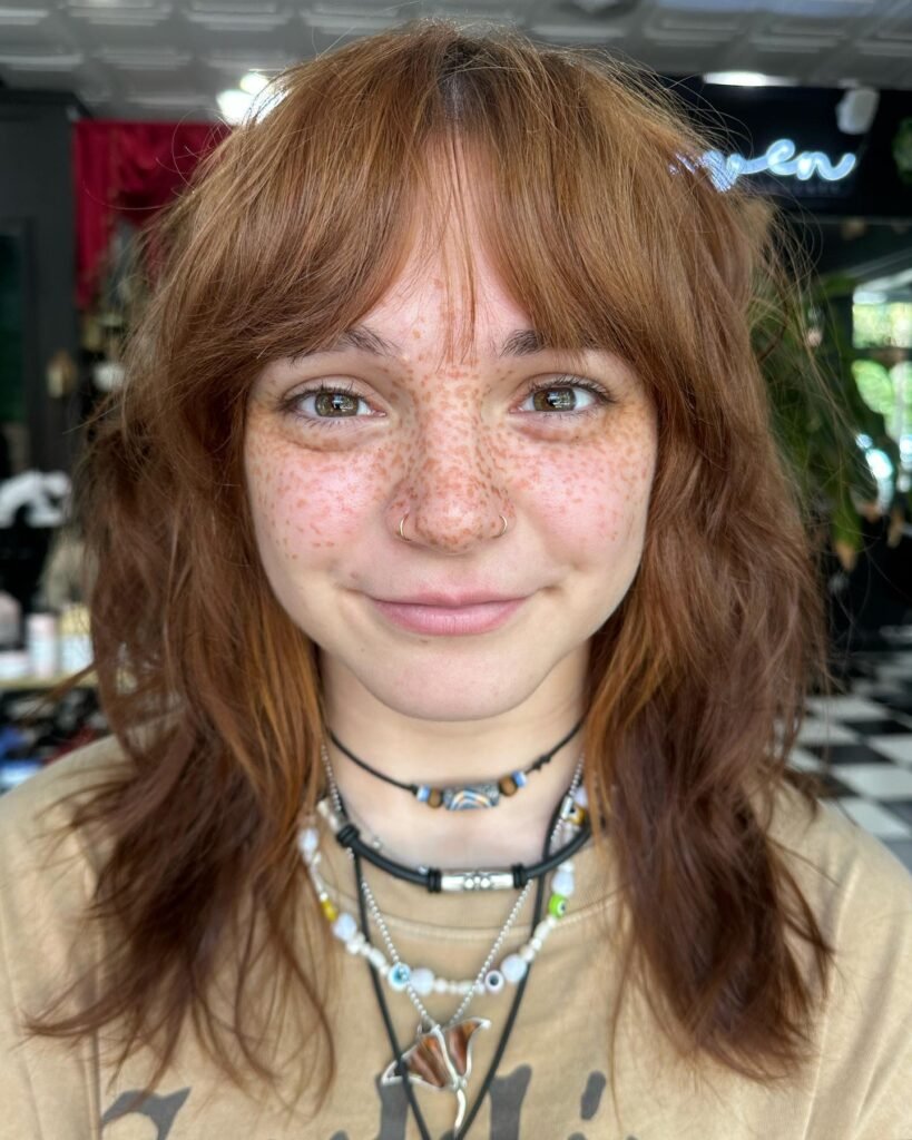 Whether you prefer soft ginger hues or deep copper tones, the wolf cut adapts beautifully to almost every vibe.