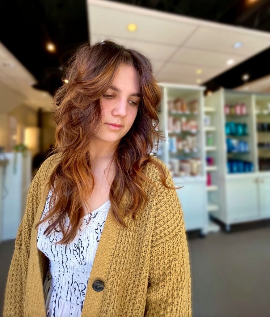 There’s something effortlessly cool about this look. The soft auburn color catches the light beautifully, while those textured waves add just the right amount of movement.