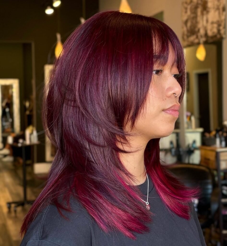 It’s the perfect mix of shaggy layers, tousled texture, and a striking shade that instantly turns heads.
