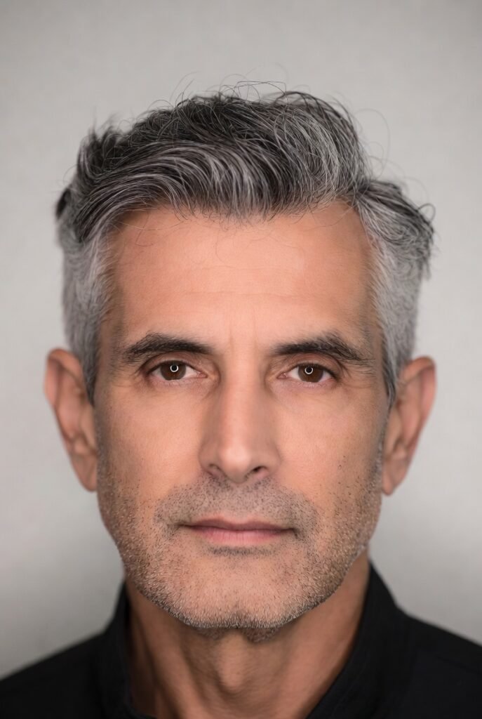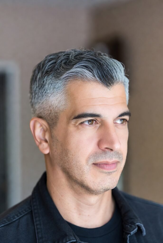 With the right haircut and grooming, grey tones can enhance texture, depth, and personality.