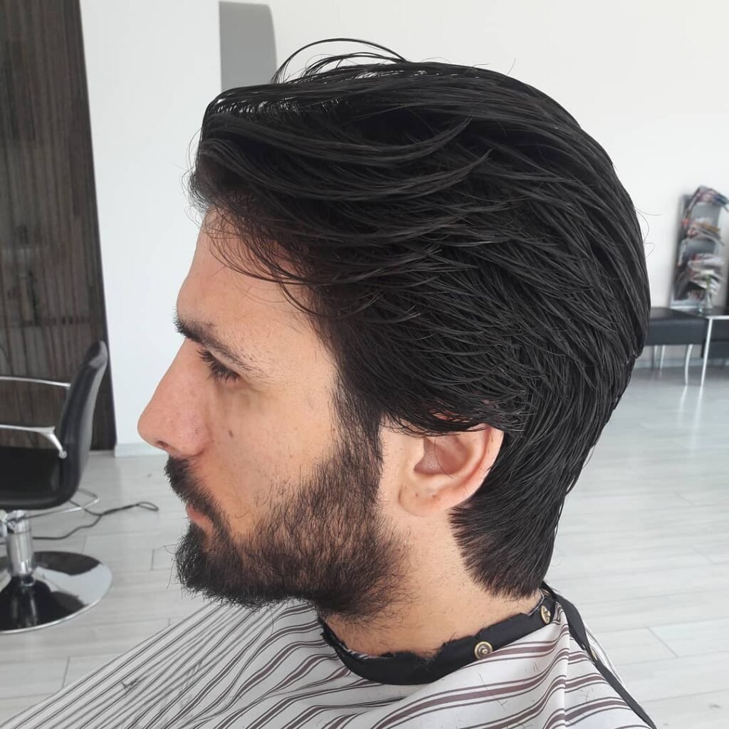 It suggests a relaxed approach to styling, making it a great option for those who prefer a low-maintenance routine. The hairstyle projects a sense of maturity and casual sophistication. It is a striking example of how hairstyles for boys can evolve with age, embracing natural growth and personal style.