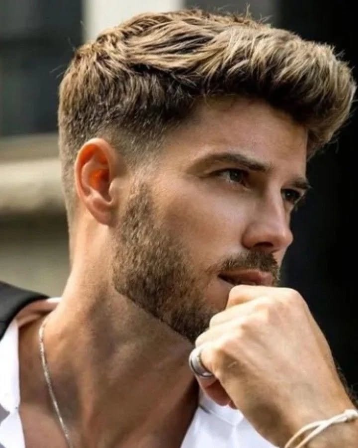 The faded sides seamlessly blend the haircut into the facial hair, creating a cohesive and strong aesthetic. This style is excellent for those looking for a mature and robust appearance. It combines contemporary haircut trends with classic bearded sophistication. This is a very popular choice among hairstyles for boys who appreciate a strong, defined look.