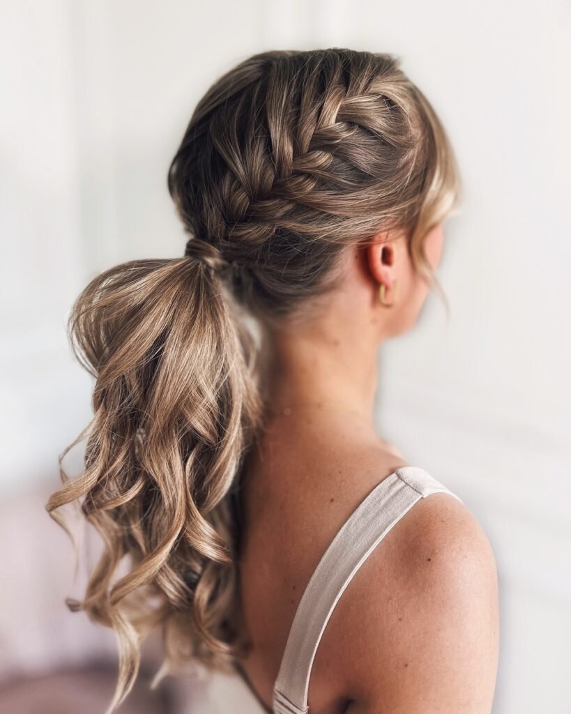 8. Pull-Through Braid Ponytail with Curly Ends