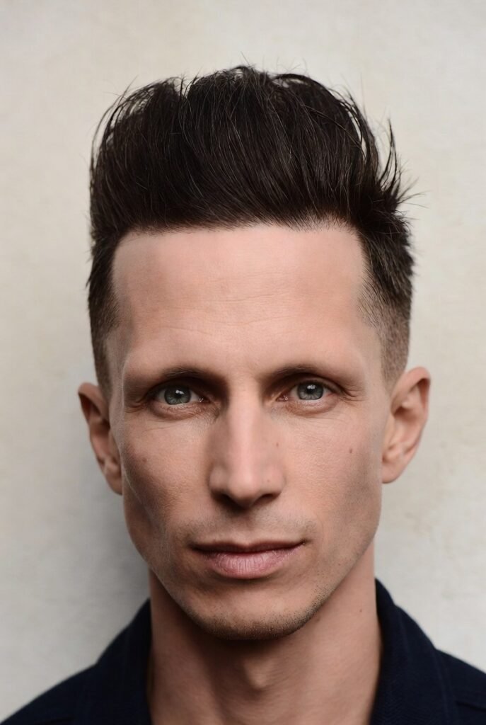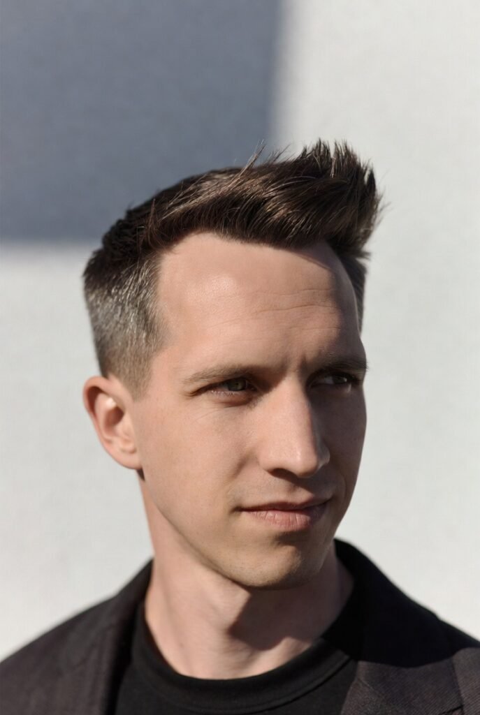 This style goes all-in on vertical volume, with hair styled straight up in textured spikes. It’s youthful and energetic, definitely making a statement.