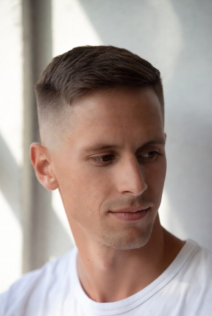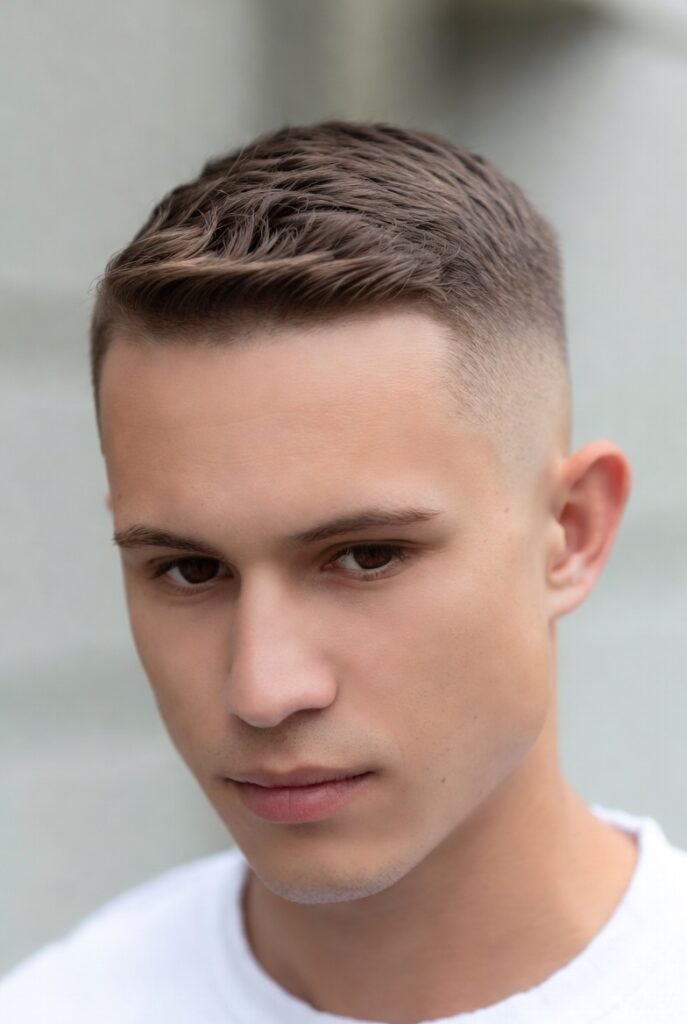 This cropped style keeps everything neat and controlled, with just enough texture on top to avoid looking too severe.