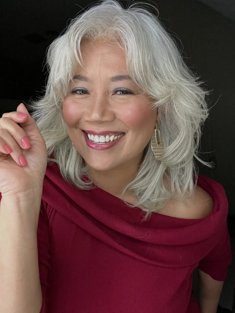 The gorgeous natural silver-gray tones shining throughout give this style a luxurious, expensive look effortlessly. Minimal styling needed — just a tiny dab of volumizing mousse and quick finger-styling creates this perfectly polished, radiantly confident everyday look.