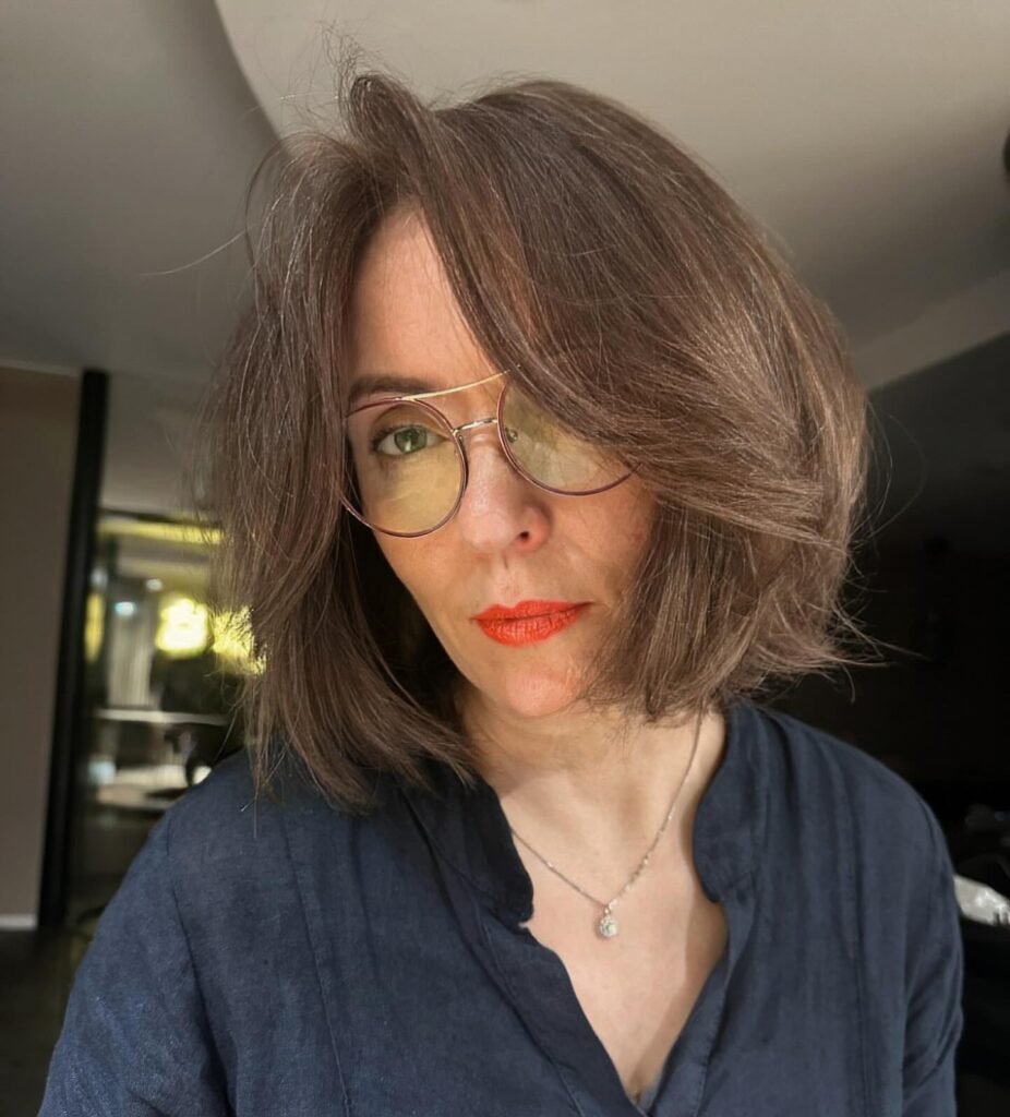 This gorgeously undone, tousled bob is the ultimate cool-girl hairstyle for women over 60 with thin, fine hair who want effortless, lived-in style with serious edge!
