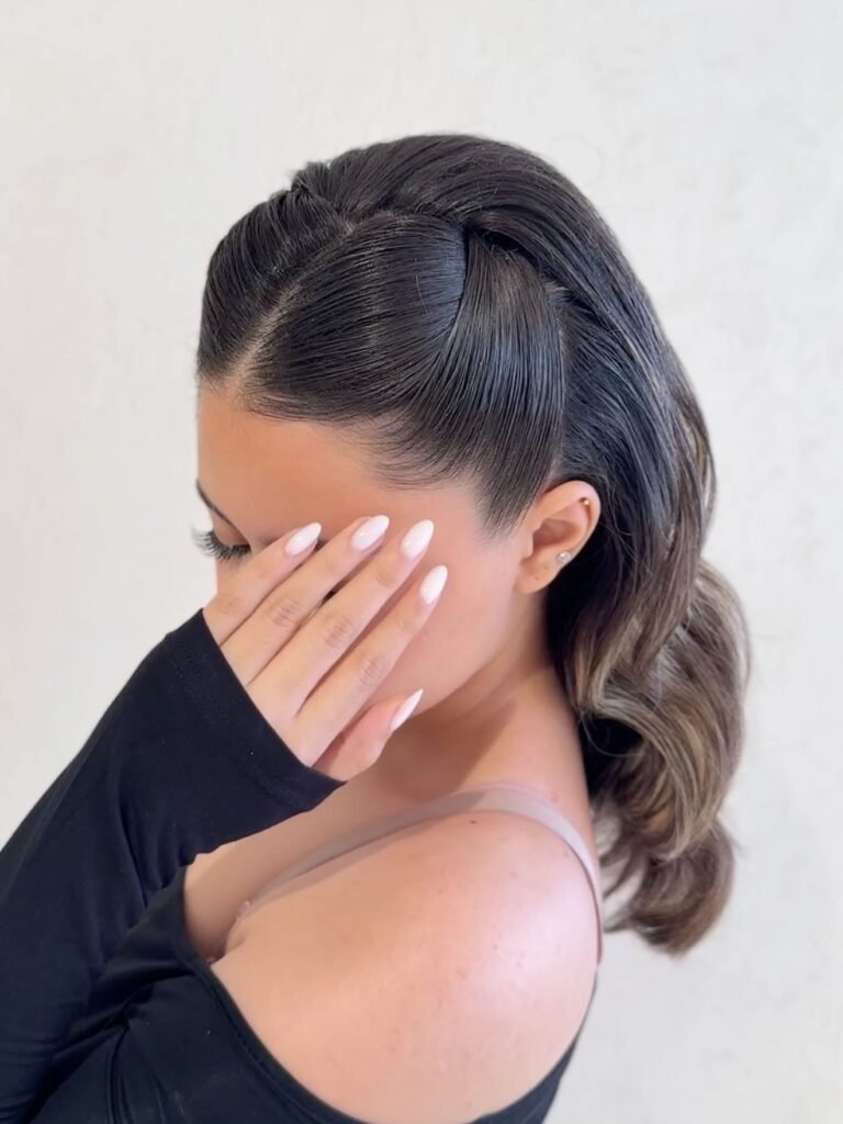 A sleek high bun paired with a perfectly slicked-back base creates one of the most refined and timeless hairstyles you can wear. The hair is smoothly brushed away from the face, allowing natural facial features to take center stage while delivering a clean, sculpted silhouette.