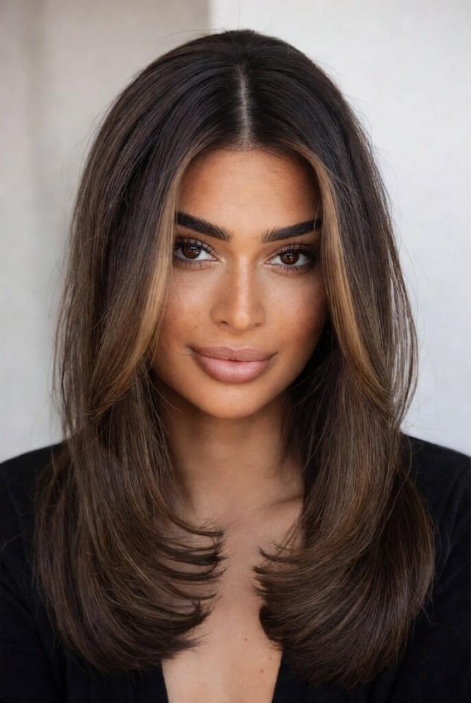 Those lighter strands placed near the face act like natural contouring, highlighting your features beautifully.
