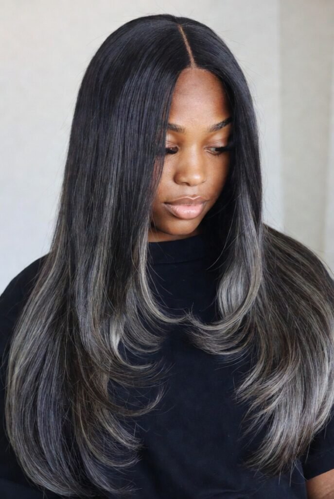9. Black Hair with Smoky Silver Ends