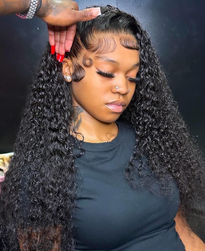 For anyone who loves a curly lace frontal hairstyle with baby hair that actually serves as part of the overall look rather than an afterthought, I think this image is the one to study. The detailing here is truly on another level.