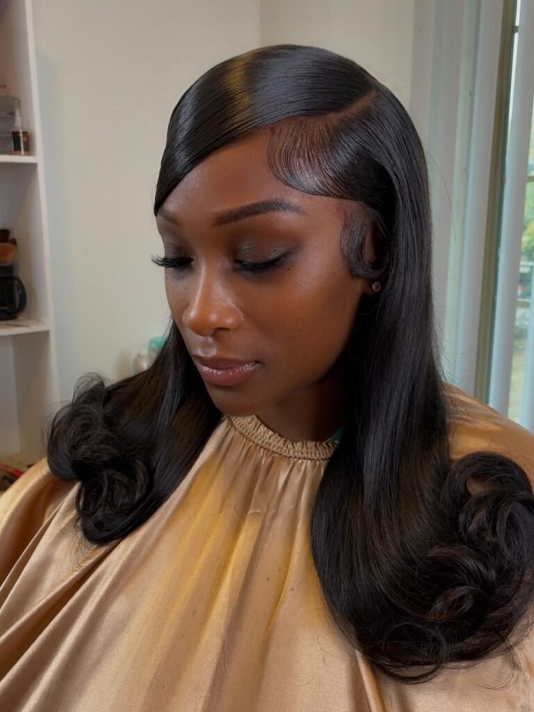 For anyone searching for a go-to lace frontal hairstyle that works for everyday wear and special occasions alike, I think this body wave install is exactly the kind of reference image to bring to your stylist. Clean, classic, and absolutely stunning from every angle.