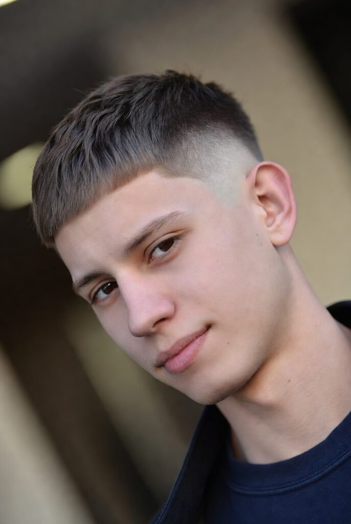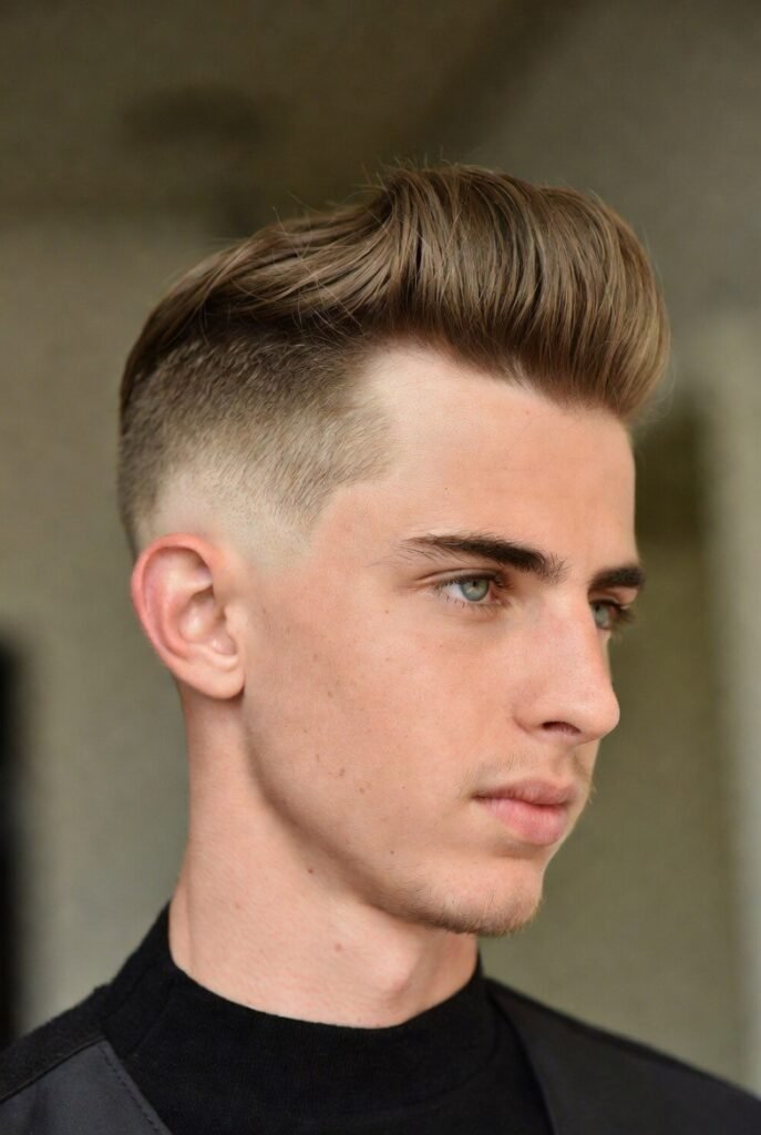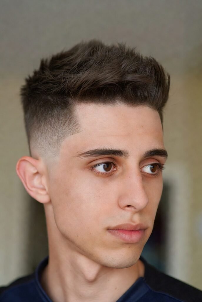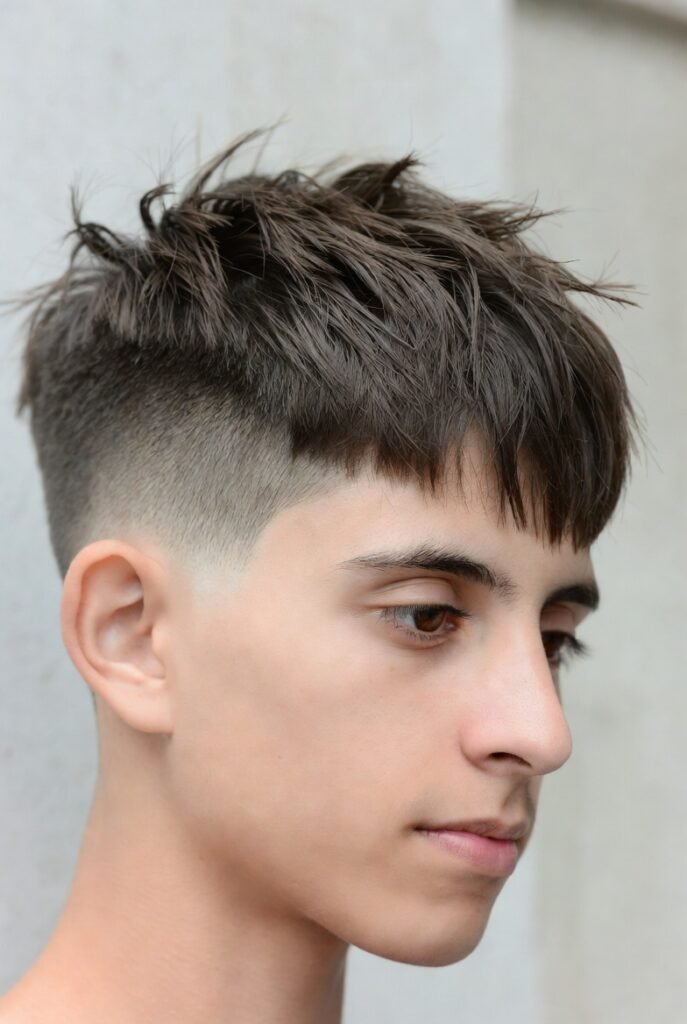 The top is textured and brushed forward, while the fade provides clean contrast.