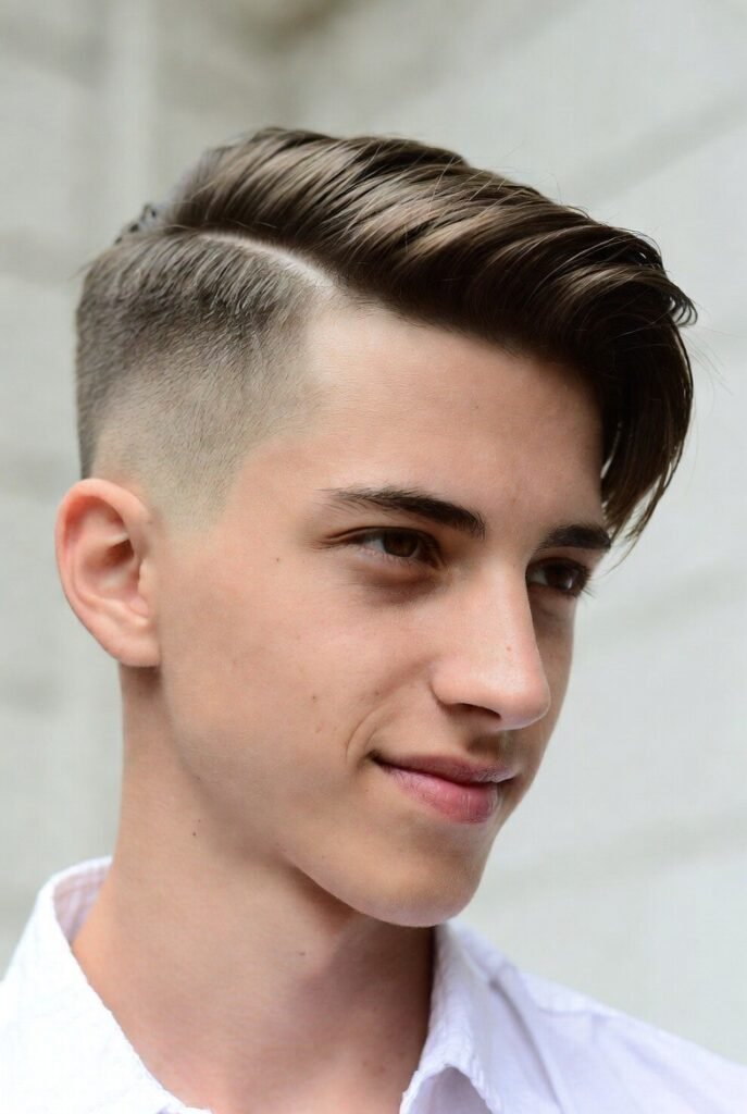 Here’s a timeless style featuring a defined side part, with hair neatly combed to one side on top and gradually tapered on the sides.