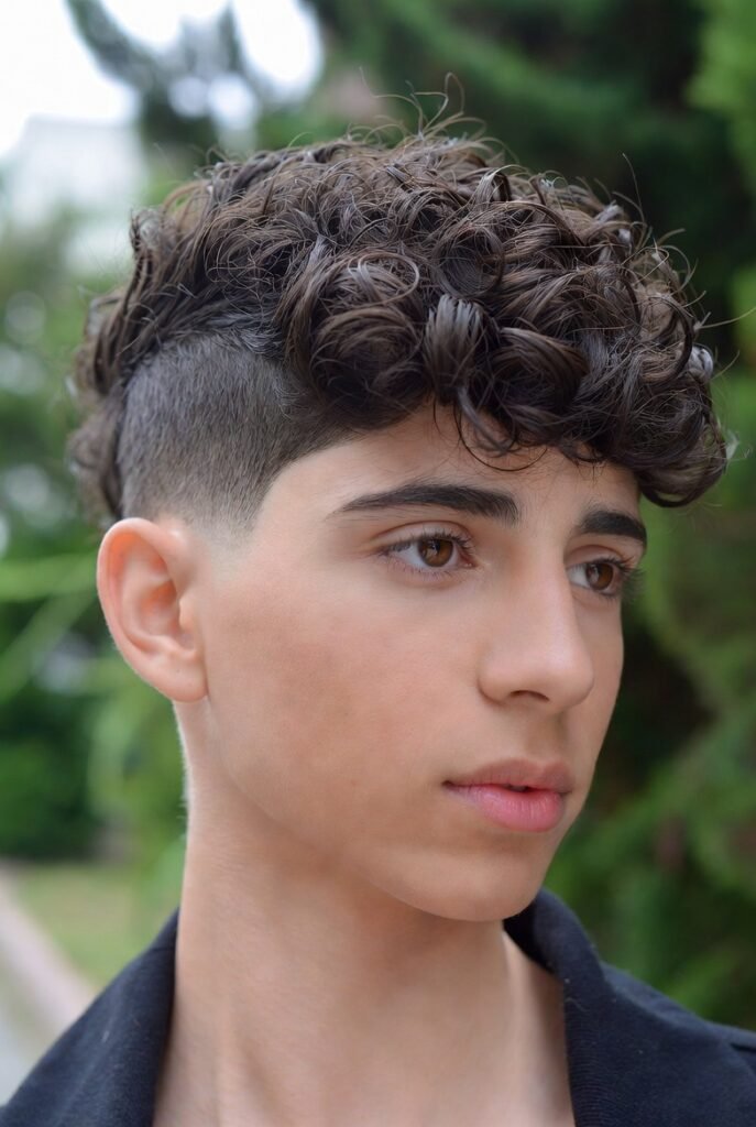 Embracing natural curl pattern, this cut keeps the curls on top while featuring a high, tight fade on the sides and back.