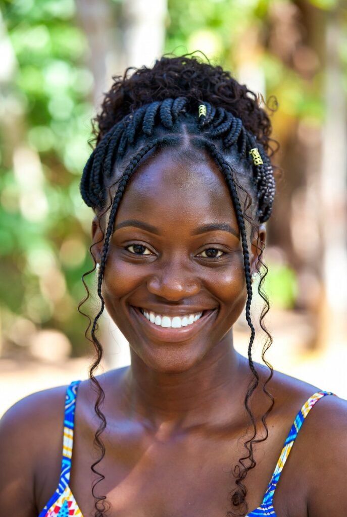 There’s something timelessly chic about combining protective braids with summer accessories.