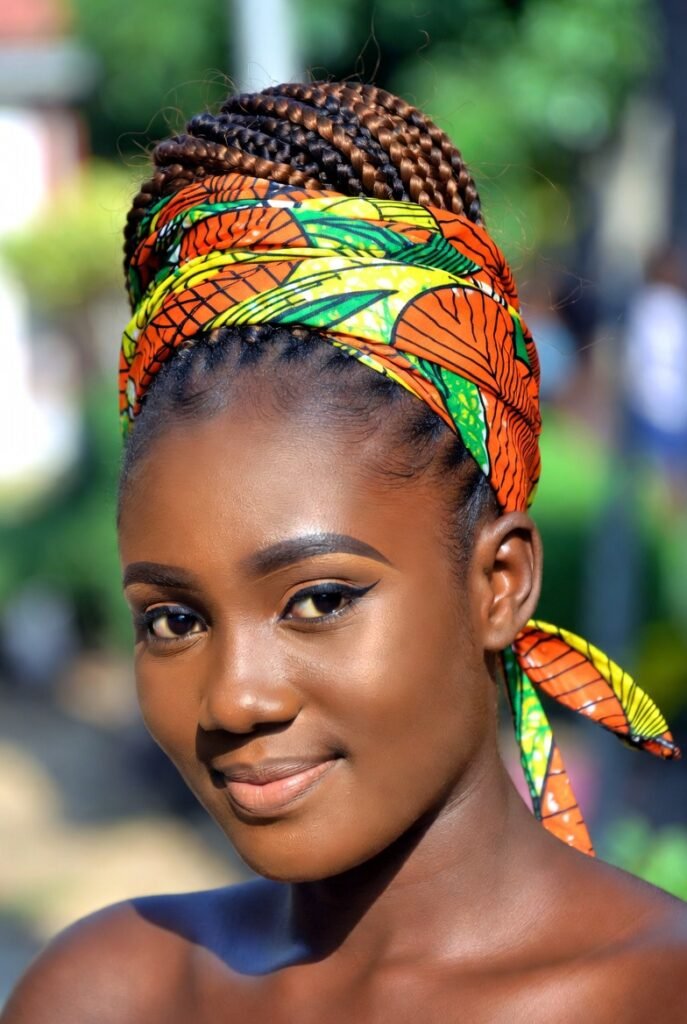 16. Braided Updo with Ankara Wrap