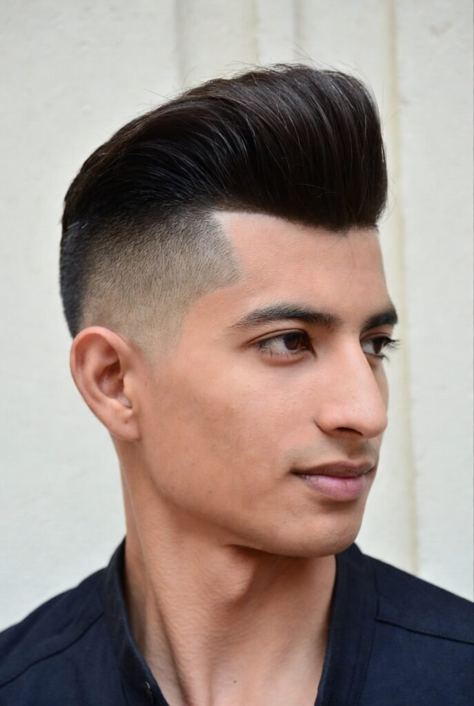 3. Sharp Pompadour with Skin Fade