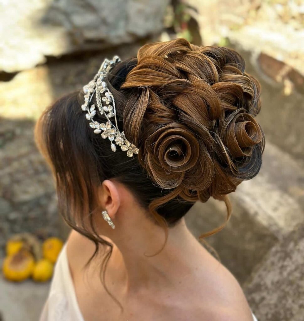 We’ve gathered a collection of the most stunning looks—from cascading fishtail braids to elaborate rosette updos—to give you the inspiration for your next royal moment. Prepare to discover the perfect way to bring grace and glamour to your next celebration.