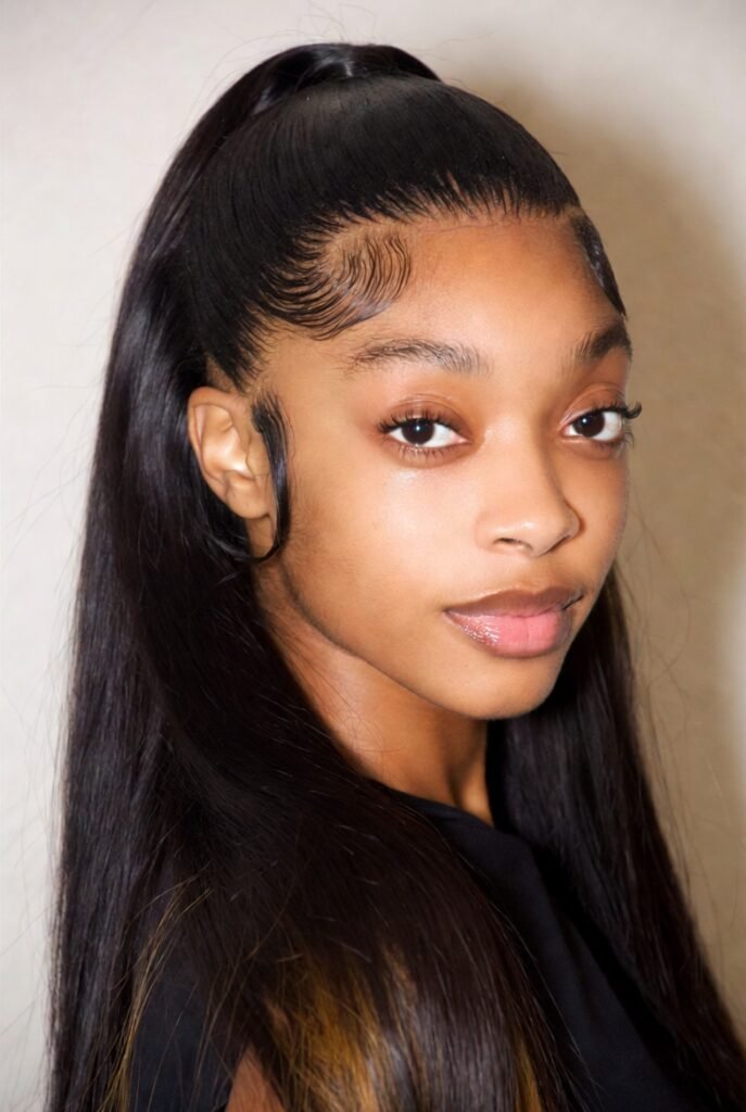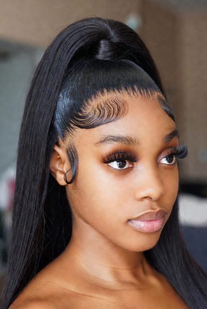 4. High Ponytail with Styled Edges