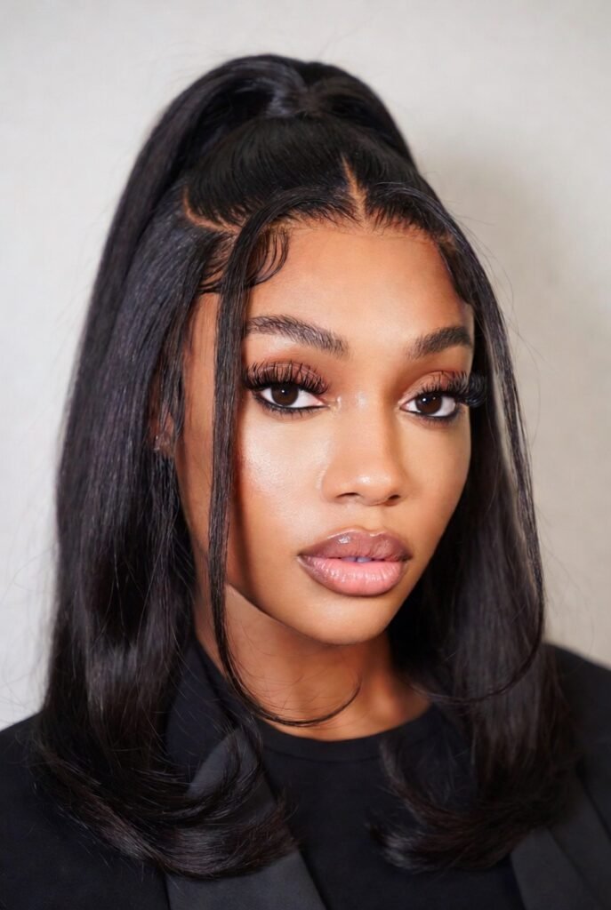 The baby hairs are laid perfectly, adding that extra touch of sophistication. It’s quick enough for a busy morning but elegant enough for dinner plans.