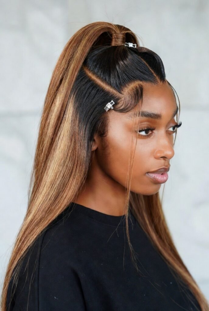 This style combines the practicality of a ponytail with the visual interest of color variation.