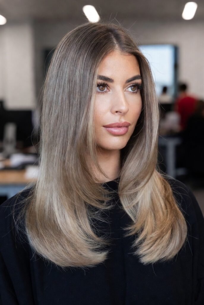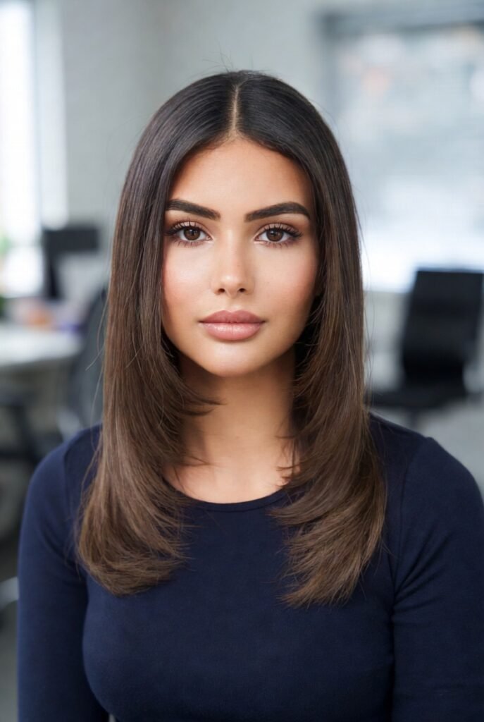 This polished look proves that simplicity never goes out of style. The hair is parted down the middle and falls naturally past the shoulders, creating an effortlessly elegant vibe.