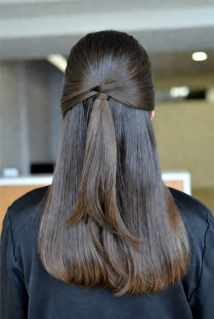 When you want something beyond basic but don’t have time for elaborate updos, this half-up twist delivers.