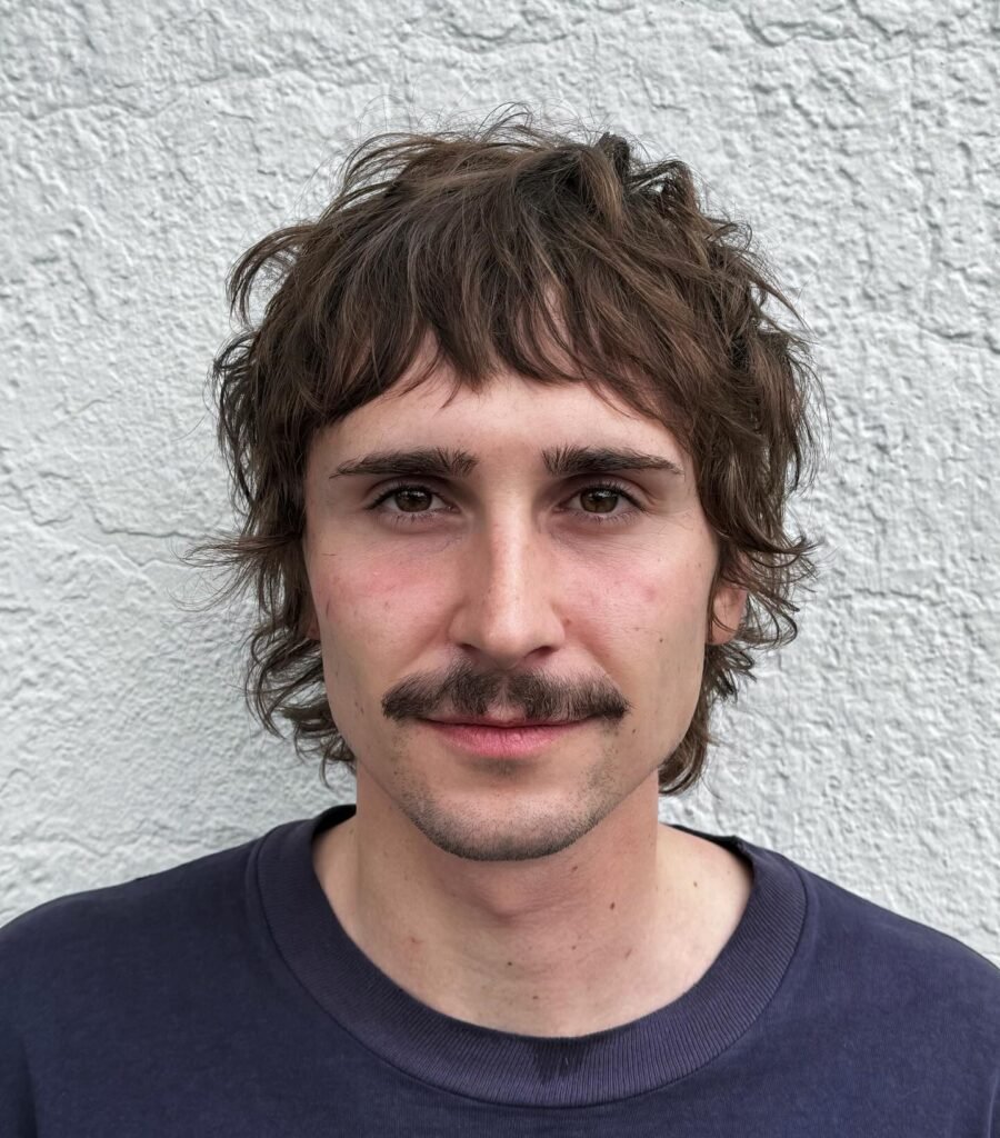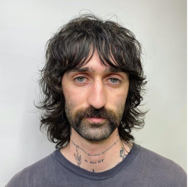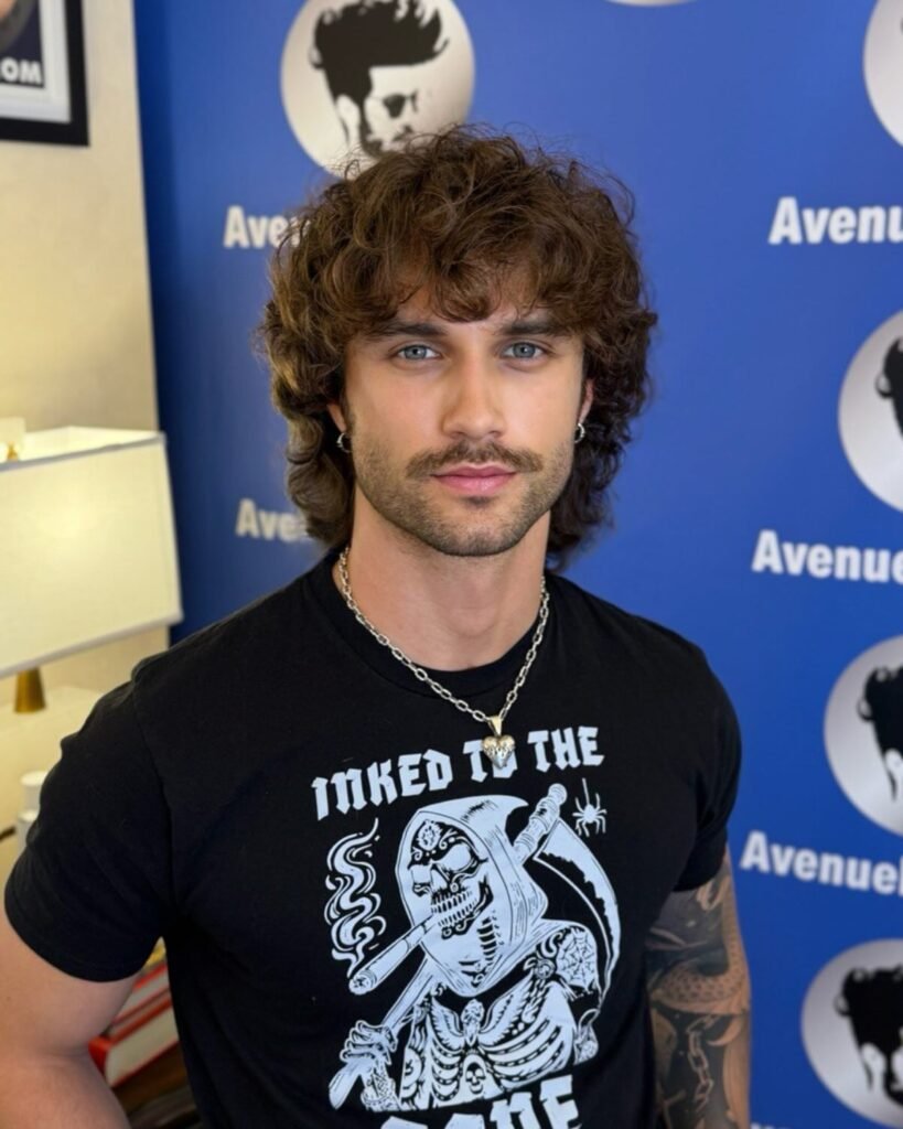The mustache adds a touch of personality that pairs surprisingly well with the laid-back hair.