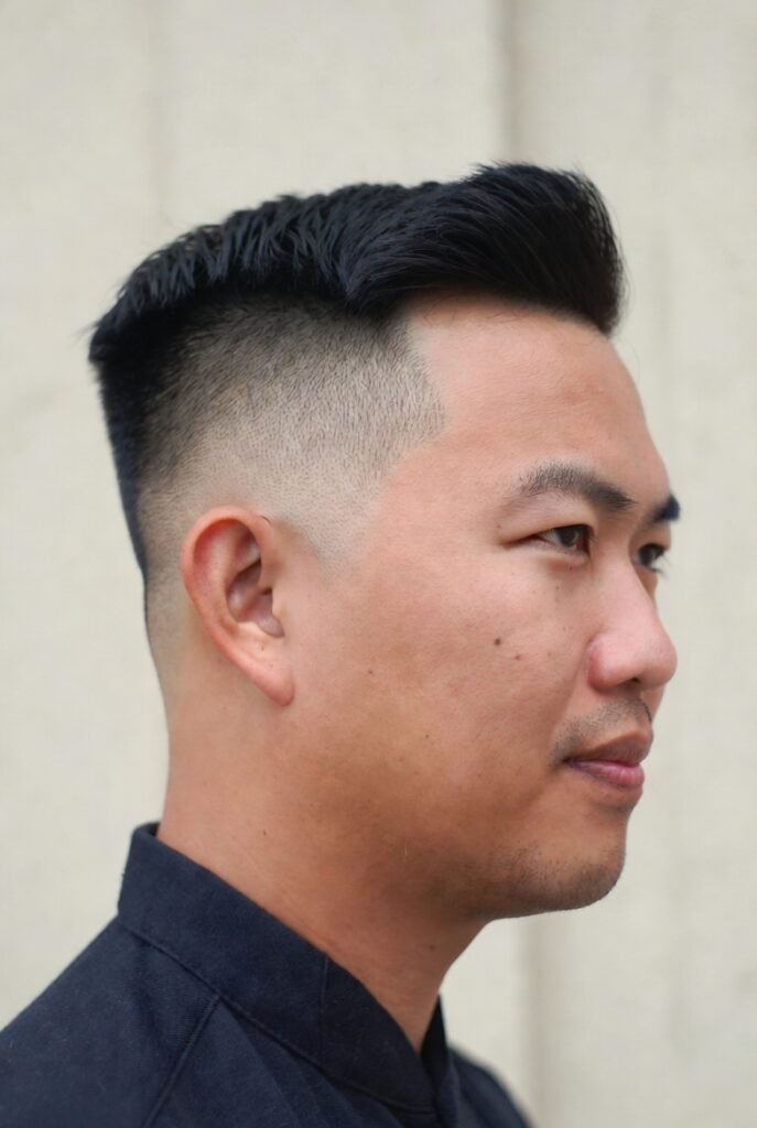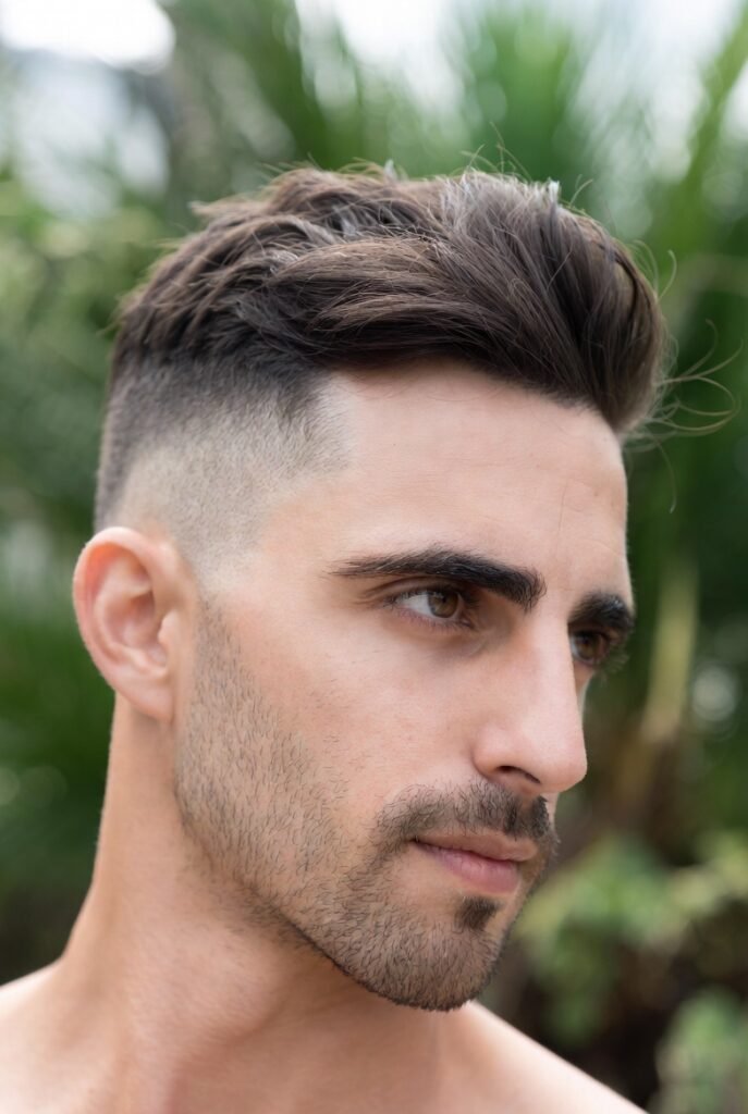 This haircut works especially well for those with strong facial features, as the clean sides draw attention upward to the face and styled top.