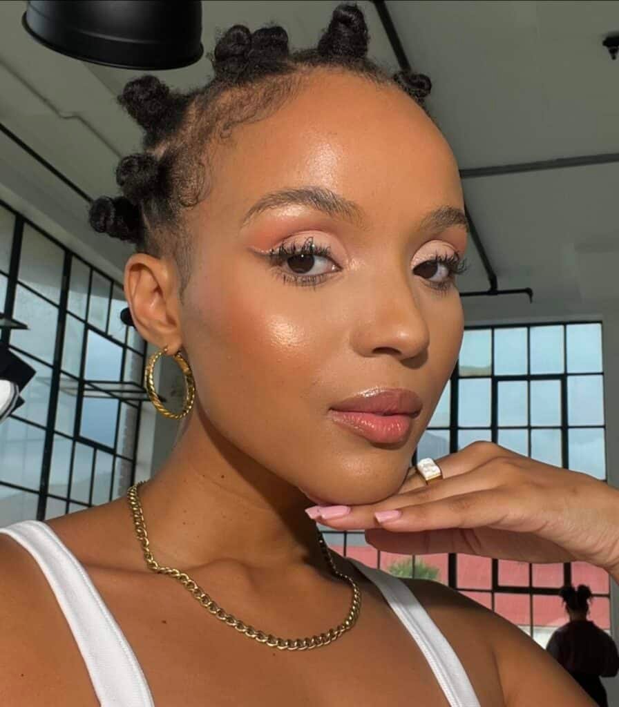 Paired with a neutral linen top, delicate gold earrings, and a butterfly necklace, this look is quietly sophisticated and effortlessly feminine — proof that short natural hair at its most pure is genuinely, undeniably stunning.