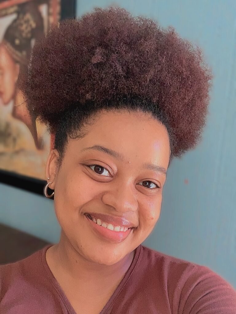 Fresh, natural, and radiantly happy — this look is the ultimate celebration of 4C hair embraced completely and confidently on its own terms.