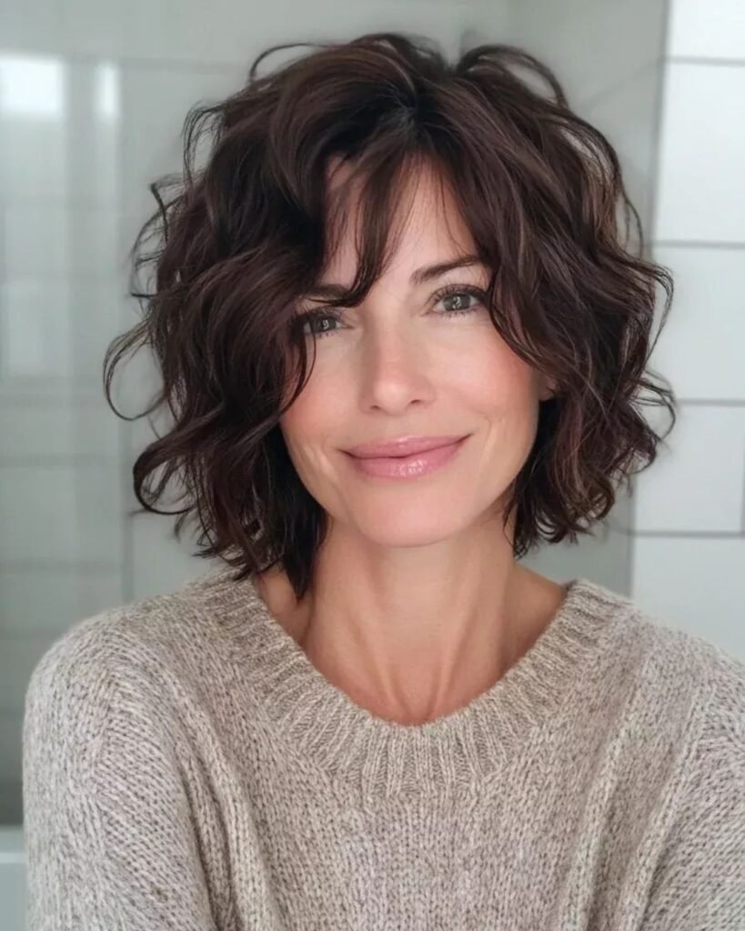 This curly pixie cut demonstrates how a shorter style can still exude grace and movement. It is versatile enough for both casual and more formal settings, offering a polished yet effortless look. The subtle waves add a touch of timeless allure.