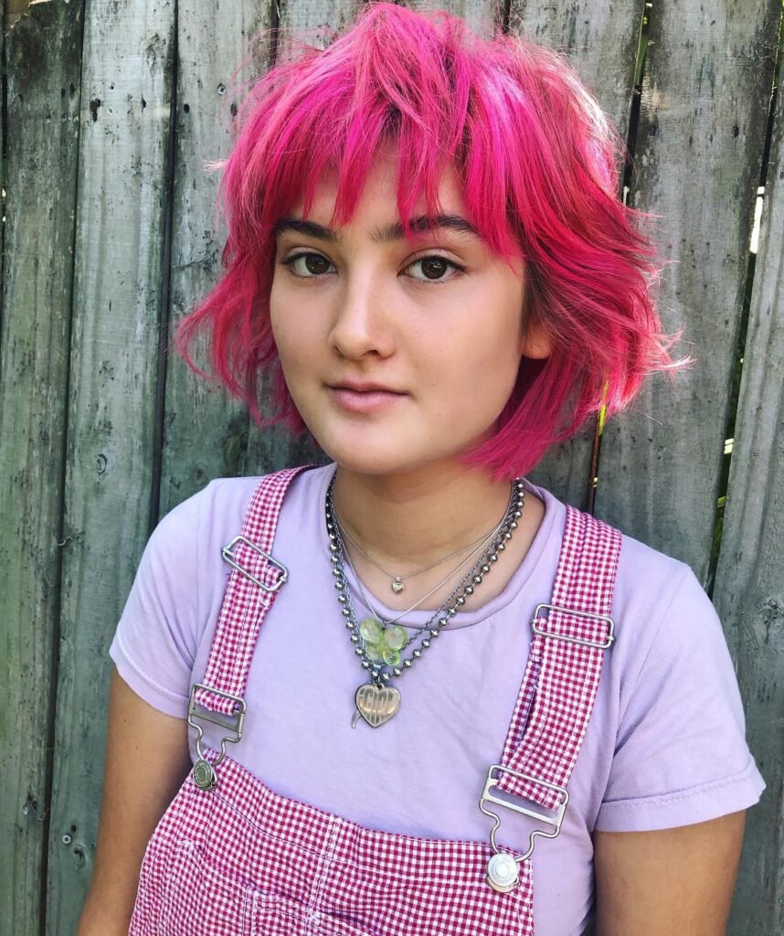 5. Bold Pink Bob with Choppy Texture