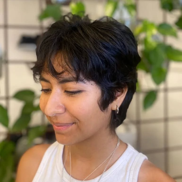 This style works beautifully for someone who wants to embrace shorter hair but still maintain some softness and movement rather than going for a super cropped look.