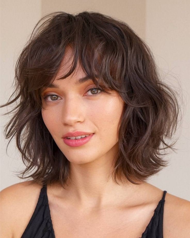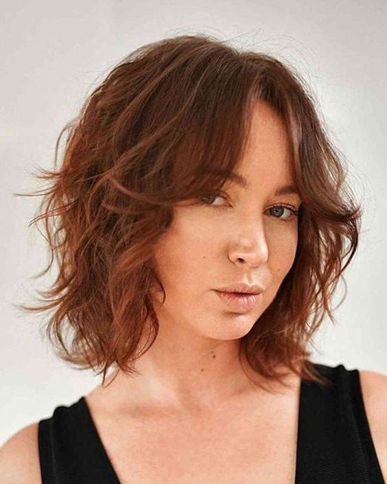 Here’s a gorgeous example of how a shag cut can bring out natural wave patterns. The warm auburn color adds richness while the curtain bangs softly frame the face without feeling heavy.
