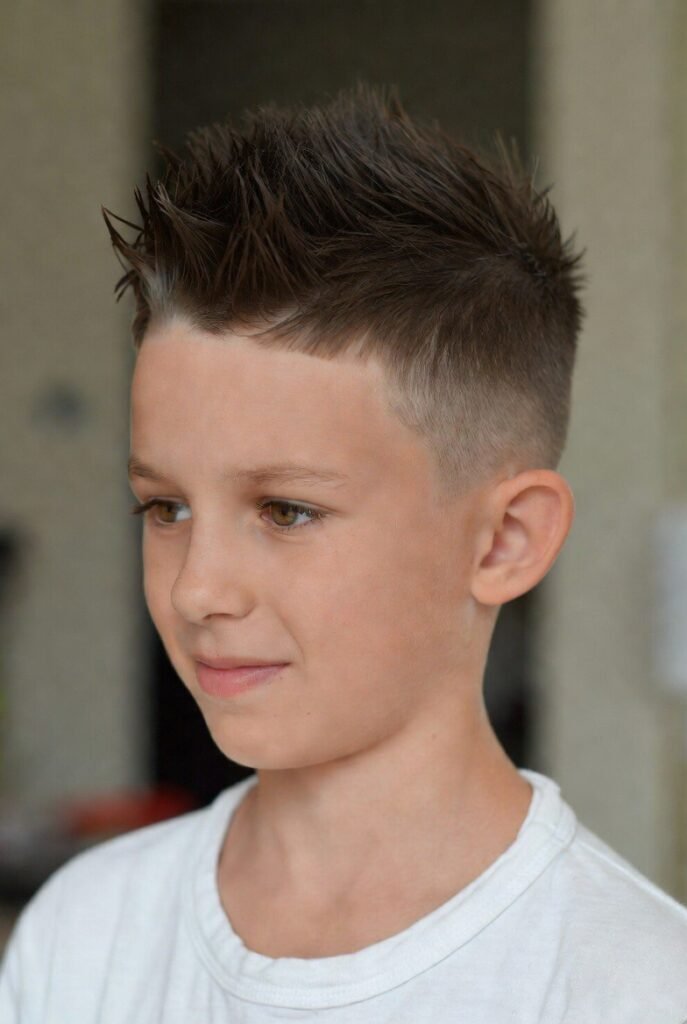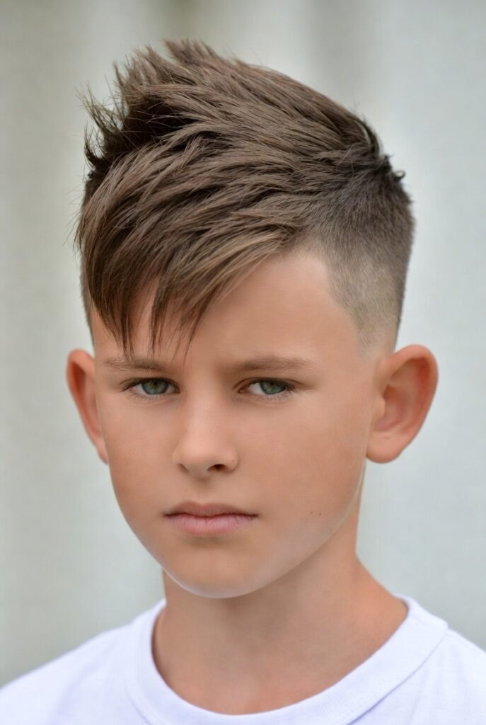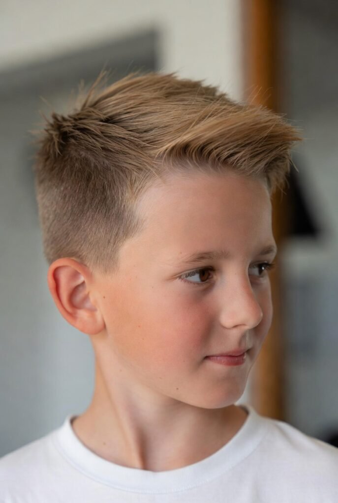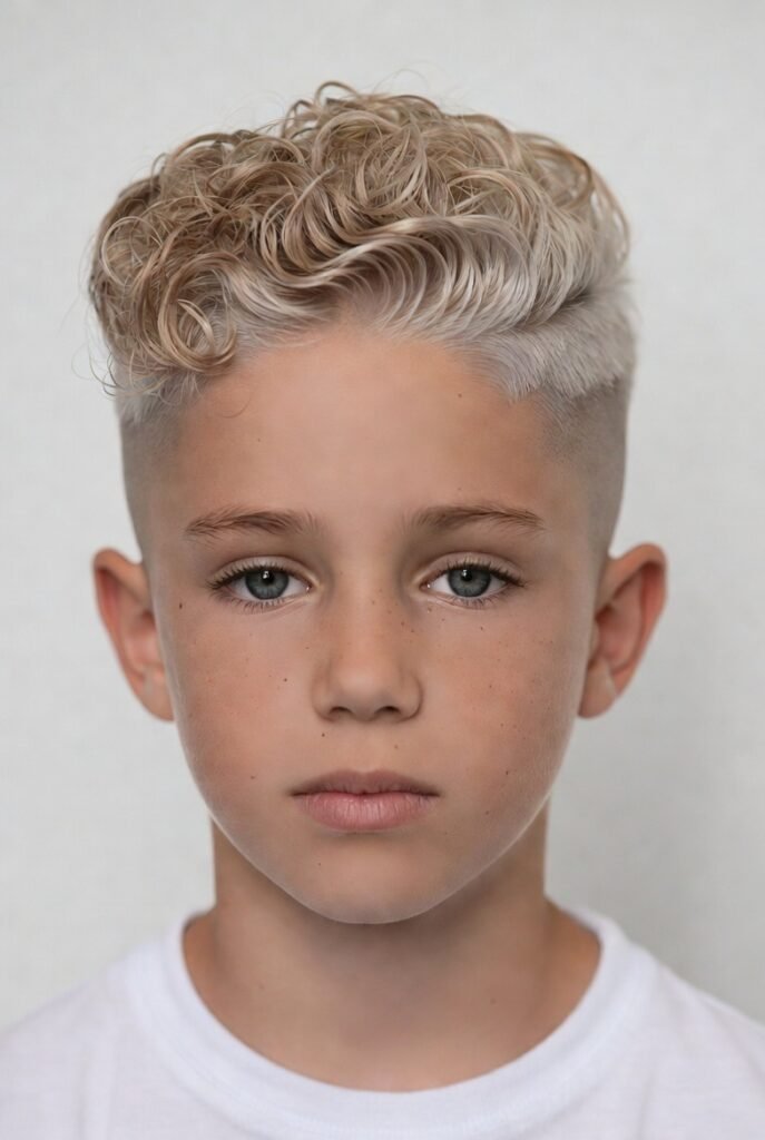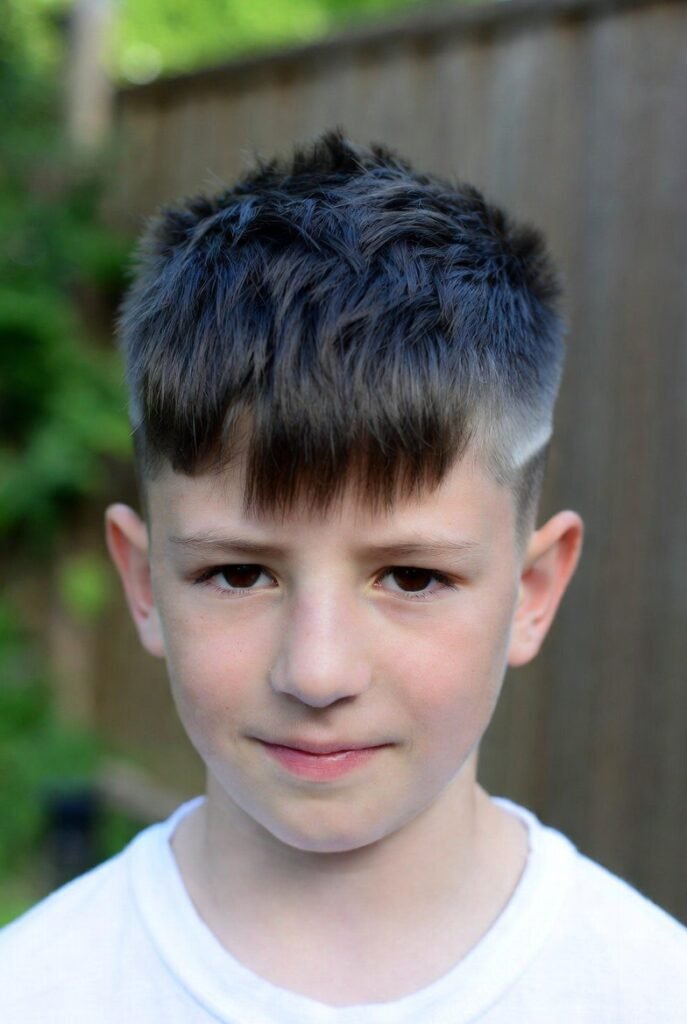 The sides are shorter but not dramatically so, maintaining a cohesive look. It’s perfect for boys with naturally textured hair who want something low-maintenance.