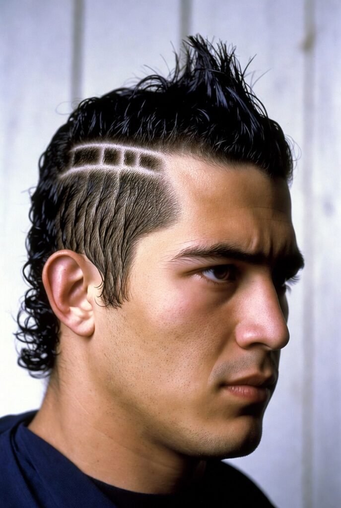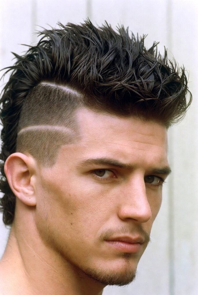 It’s a bold choice that demands confidence—think 80s rock rebellion meets modern precision barbering.