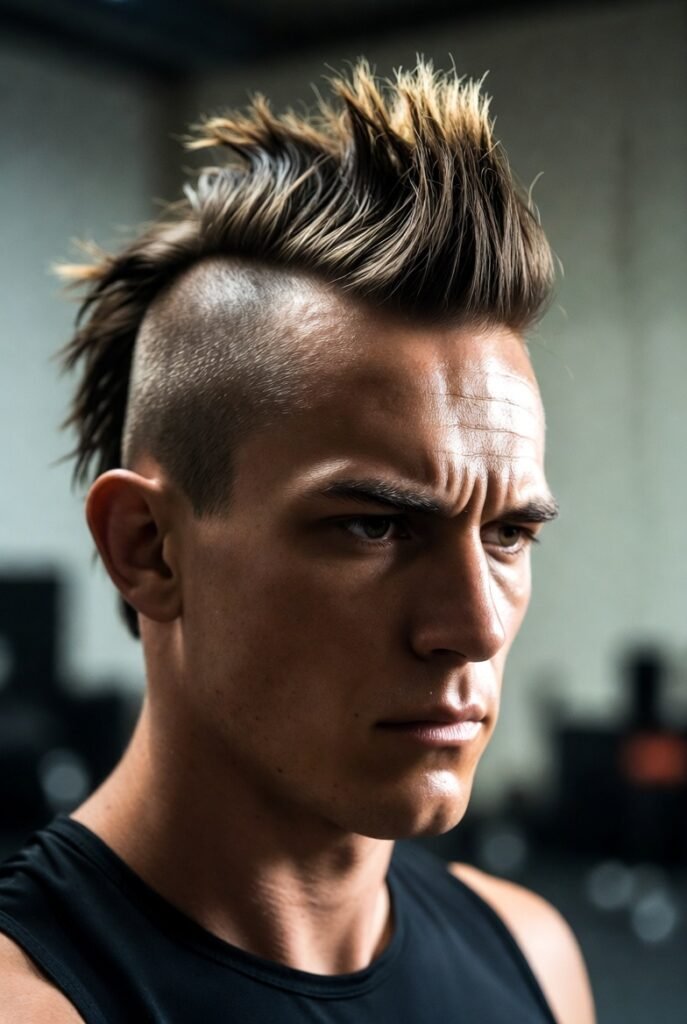 It’s cleaner than a mohawk but still distinctively styled, ideal for someone whose wrestling character leans more technical than brawler.